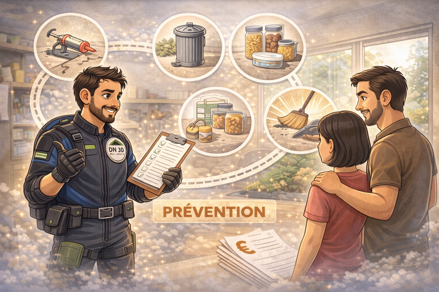 Parce qu’une intervention ne s’arrête pas au jour du traitement, nous accompagnons nos clients avec des conseils concrets de prévention, pour limiter durablement les risques de récidive. Notre objectif n’est pas seulement de traiter, mais d’apporter une solution durable et pérenne. Nos tarifs sont clairs, annoncés en toute transparence, et toujours basés sur un diagnostic réel.
